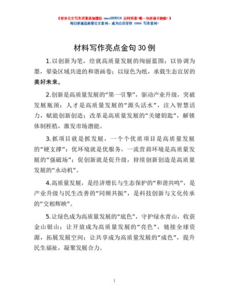 / 材料写作亮点金句30例