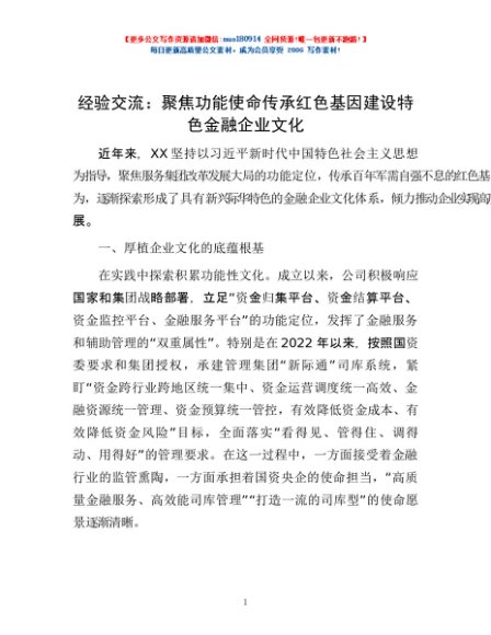 / 经验交流:聚焦功能使命 传承红色基因 建设特色金融企业文化