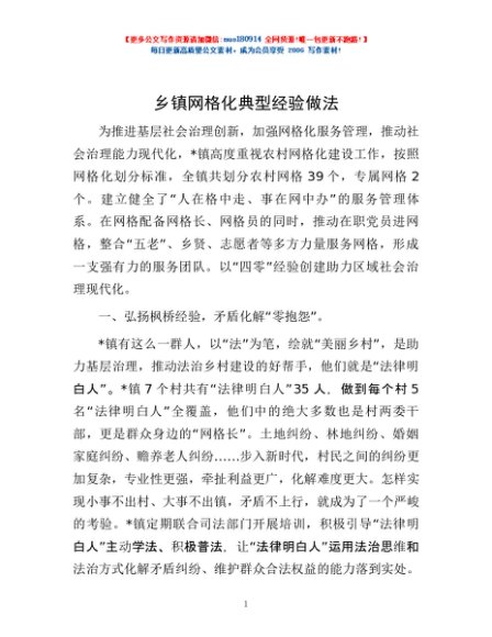 乡镇网格化典型经验做法