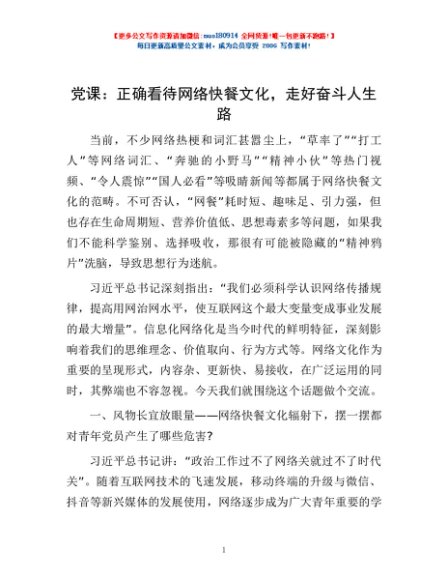 党课:正确看待网络快餐文化,走好奋斗人生路