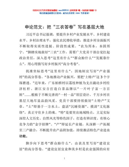 / 申论范文:把“三农答卷”写在基层大地