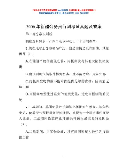 2006年新疆公务员行测考试真题及答案