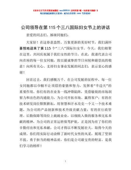 / 公司领导在第115个三八国际妇女节上的讲话