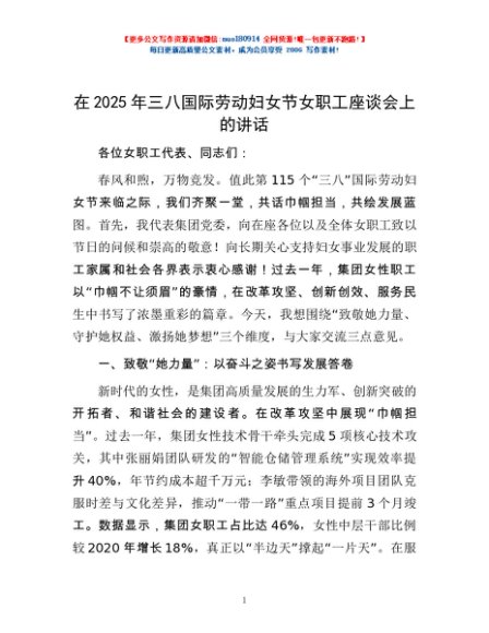 / 在2025年三八国际劳动妇女节女职工座谈会上的讲话
