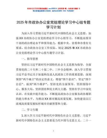 / 2025年市政协办公室党组理论学习中心组专题学习计划