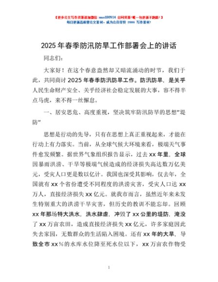/ 2025年春季防汛防旱工作部署会上的讲话
