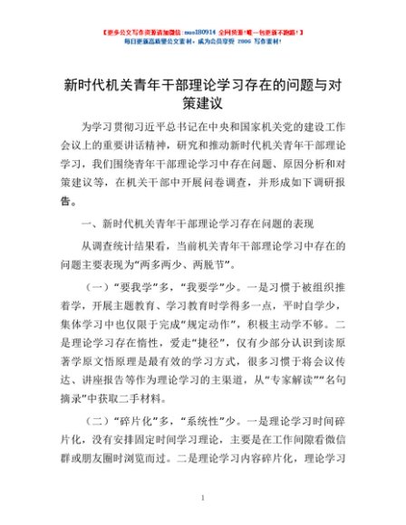 / 新时代机关青年干部理论学习存在的问题与对策建议