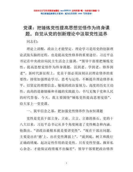 党课:把锤炼党性提高思想觉悟作为终身课题,自觉从党的创新理论中汲取党性滋养