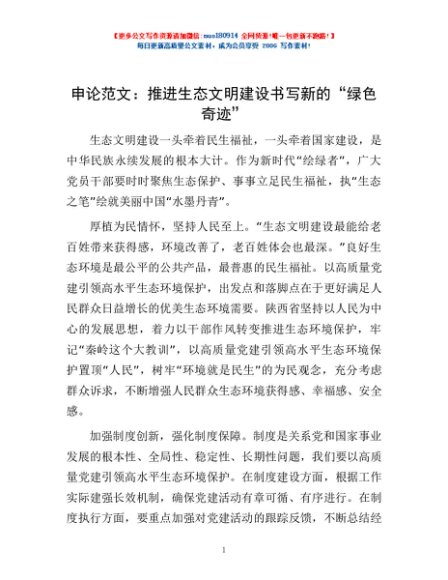 / 申论范文:推进生态文明建设 书写新的“绿色奇迹”