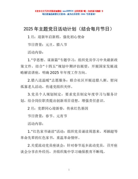 / 2025年主题党日活动计划(结合每月节日)