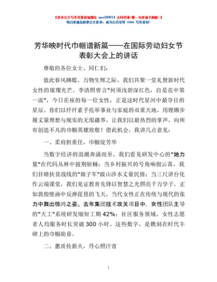 / 芳华映时代 巾帼谱新篇——在国际劳动妇女节表彰大会上的讲话
