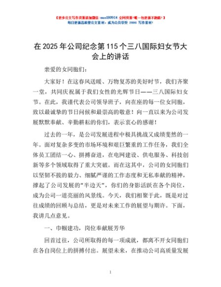 / 在2025年公司纪念第115个三八国际妇女节大会上的讲话