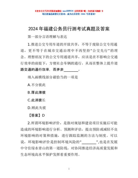/ 2024年福建公务员行测考试真题及答案