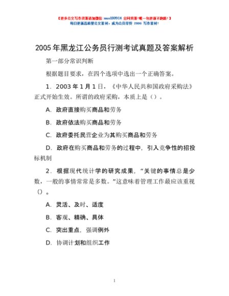 / 2005年黑龙江公务员行测考试真题及答案解析