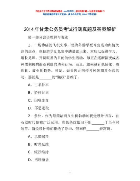 2014年甘肃公务员考试行测真题及答案解析