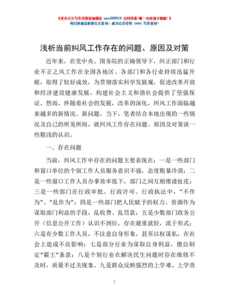 / 浅析当前纠风工作存在的问题、原因及对策