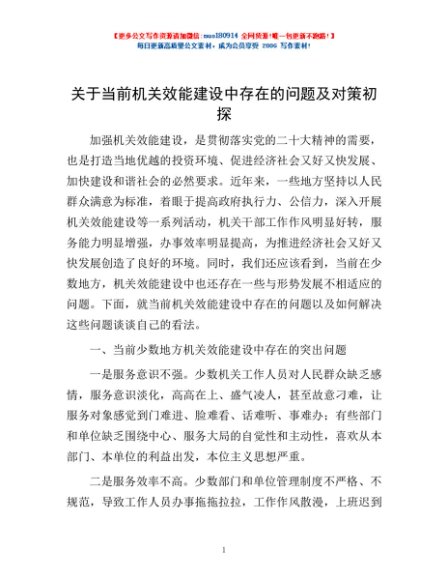 / 关于当前机关效能建设中存在的问题及对策初探