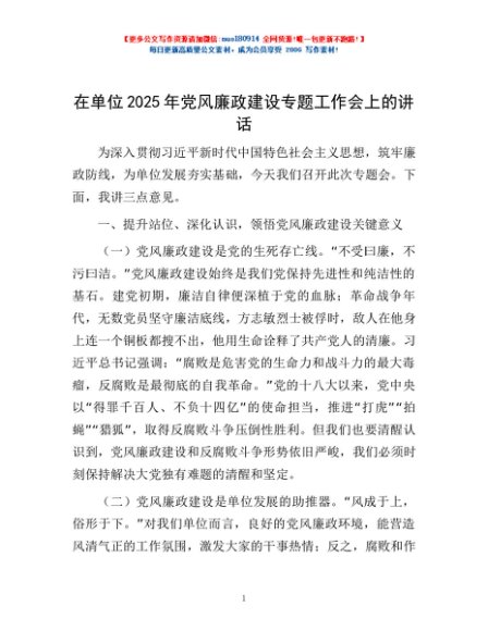 / 在单位2025年党风廉政建设专题工作会上的讲话