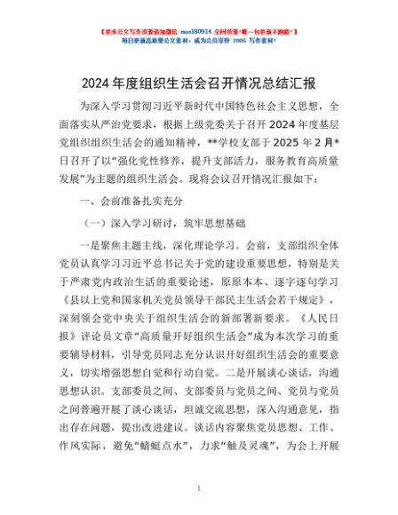 / 2024年度组织生活会召开情况总结汇报