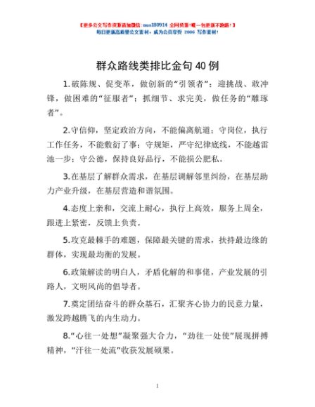/ 群众路线类排比金句40例