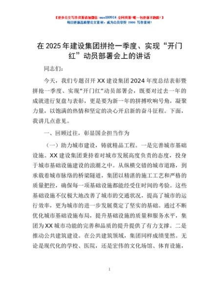 / 在2025年建设集团拼抢一季度、实现“开门红”动员部署会上的讲话