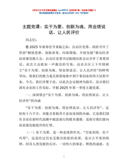 / 主题党课:实干为要、创新为魂,用业绩说话、让人民评价