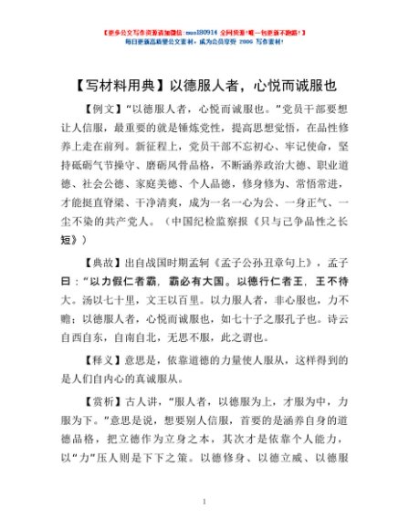 / 【写材料用典】以德服人者,心悦而诚服也