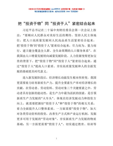 / 把“投资于物”同“投资于人”紧密结合起来