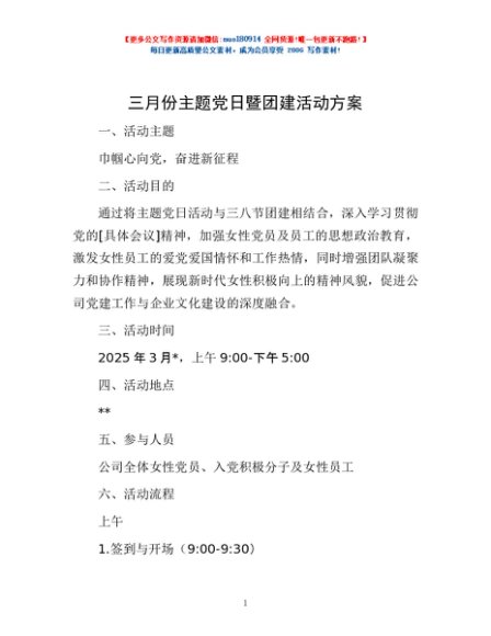 / 三月份主题党日暨团建活动方案