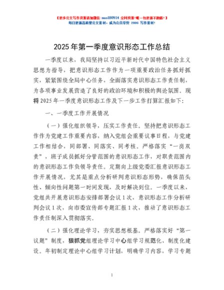 / 2025年第一季度意识形态工作总结
