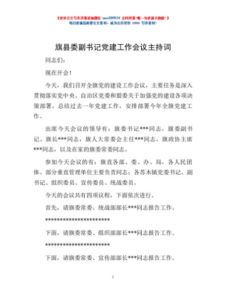 / 旗县委副书记党建工作会议主持词