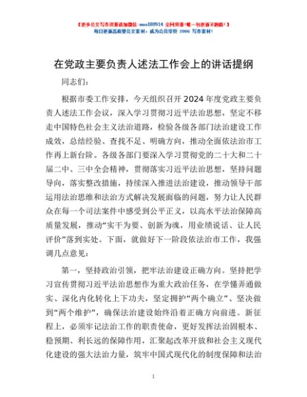 / 在党政主要负责人述法工作会上的讲话提纲