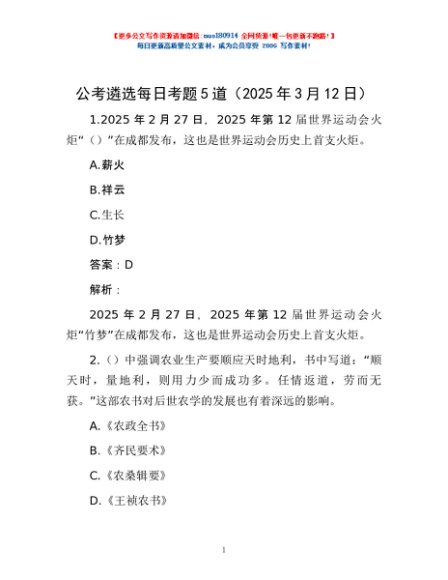/ 公考遴选每日考题5道(2025年3月12日)