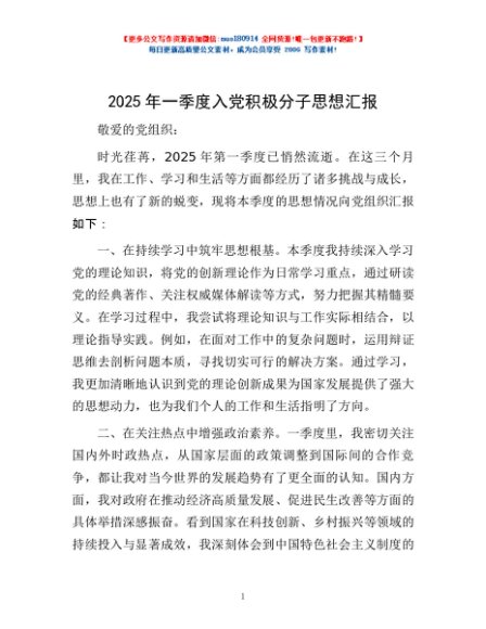 / 2025年一季度入党积极分子思想汇报