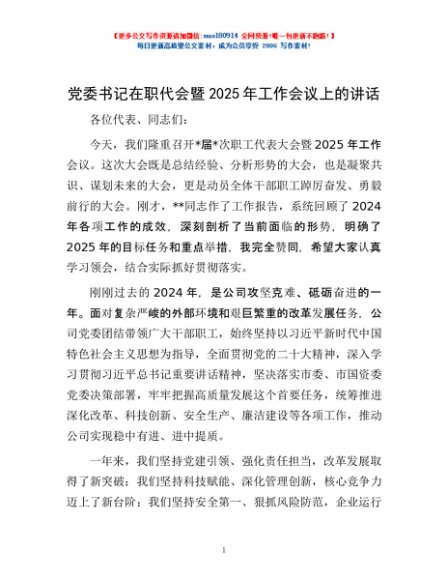/ 党委书记在职代会暨2025年工作会议上的讲话