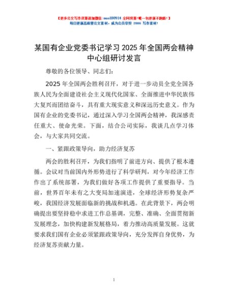 / 某国有企业党委书记学习2025年全国两会精神中心组研讨发言