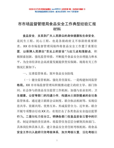 / 市市场监督管理局食品安全工作典型经验汇报材料