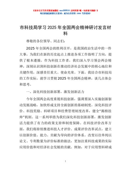 / 市科技局学习2025年全国两会精神研讨发言材料