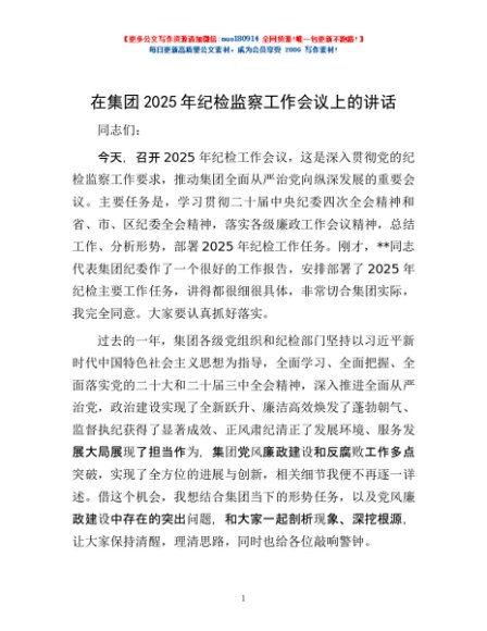 / 在集团2025年纪检监察工作会议上的讲话
