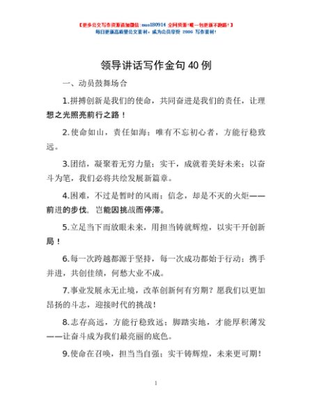 / 领导讲话写作金句40例