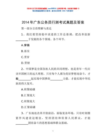 2014年广东公务员行测考试真题及答案