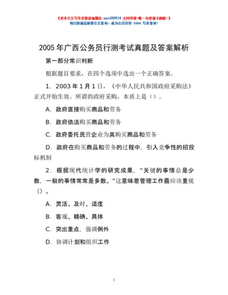 2005年广西公务员行测考试真题及答案解析