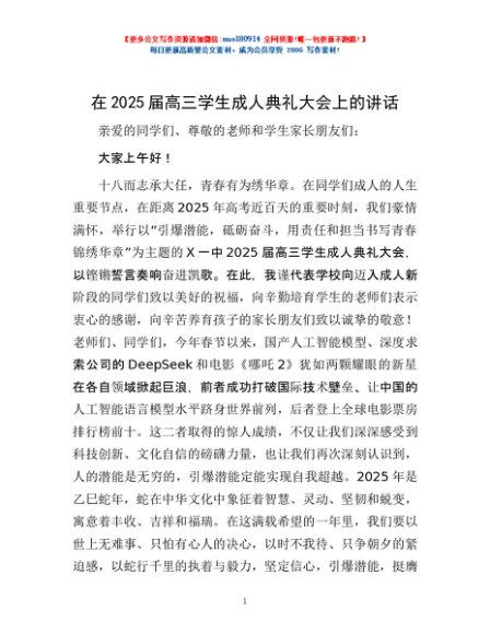 / 在2025届高三学生成人典礼大会上的讲话