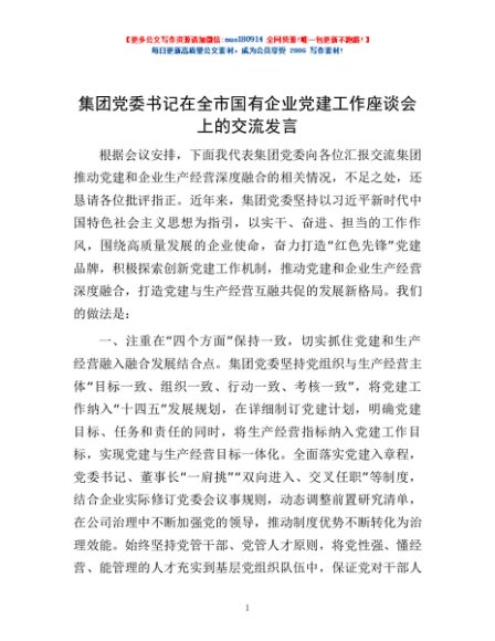 / 集团党委书记在全市国有企业党建工作座谈会上的交流发言