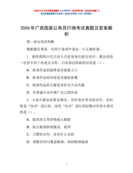 2006年广西国家公务员行测考试真题及答案解析