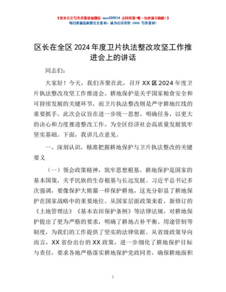 / 区长在全区2024年度卫片执法整改攻坚工作推进会上的讲话