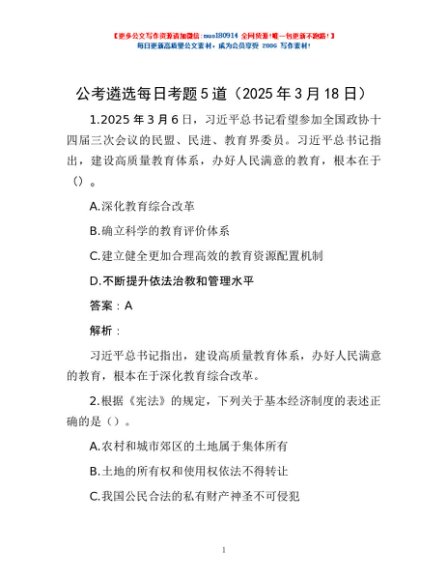 / 公考遴选每日考题5道(2025年3月18日)