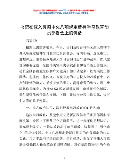 / 书记在深入贯彻中央八项规定精神学习教育动员部署会上的讲话