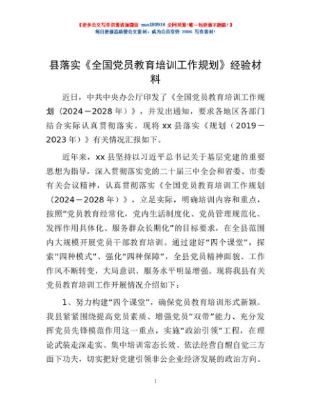 / 县落实《全国党员教育培训工作规划》经验材料