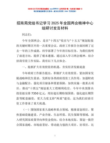 / 招商局党组书记学习2025年全国两会精神中心组研讨发言材料